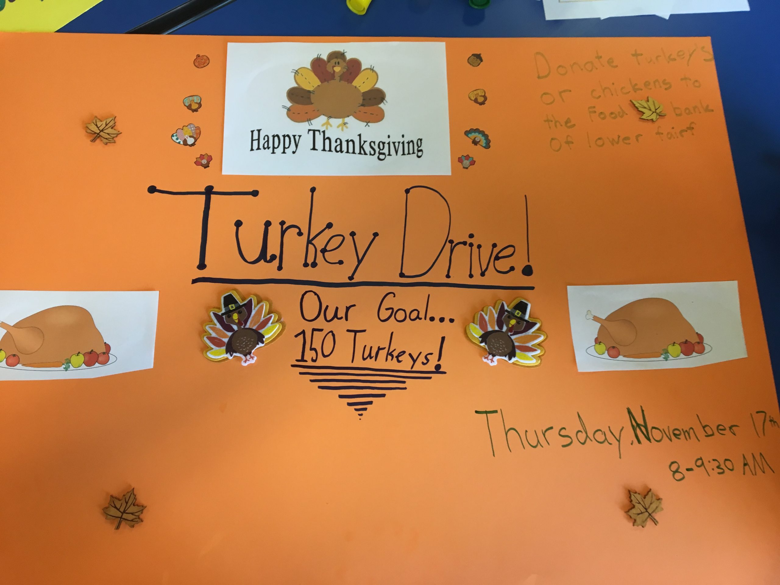 The Holmes Kids Care Club is busy preparing for our annual Turkey Drive to be held on Thursday, November 17th, 8:00-9:30am. They met last Friday to make posters to hang up around the school to advertise the Turkey Drive and to learn more about ways to help others during the holiday season (see slideshow). The Turkey Drive is being held to benefit the Food Bank of Lower Fairfield County. Please drop off a frozen turkey or chicken between 8:00-9:30 AM on November 17th and let’s reach our goal of feeding 150 families this Thanksgiving!